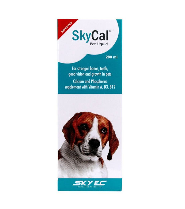 Skycal Pet Syrup is a calcium and vitamin supplement for cats and dogs that can be used for a variety of purposes, including: